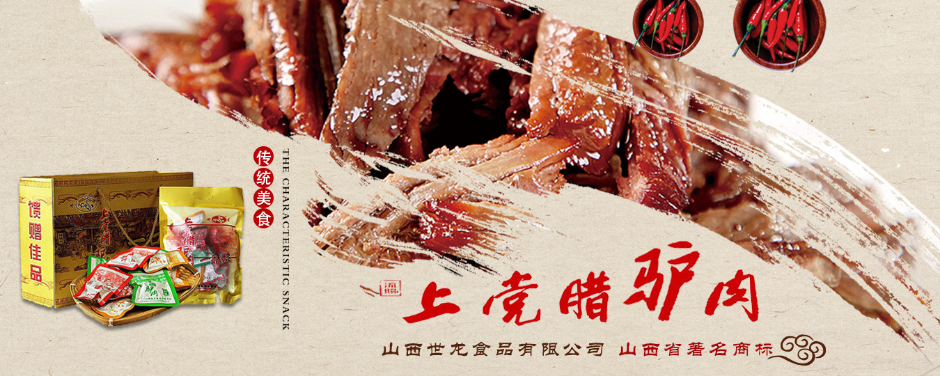 山西世龍食品有限公司是以“世龍”牌上黨臘驢肉系列產品為主導,集科研開發、良種繁育、基地建設、生產加工、市場營銷于一體的農業產業化國家重點龍頭企業、全國農業標準化示范區、全國食品行業優秀龍頭企業、山西省農業產業化重點龍頭企業、山西省農產品加工“513”工程單位、山西省帶動貧困地區基地建設重點龍頭企業、山西省民營畜牧業示范基地、山西省質量信譽AAA級單位、山西省重合同守信用單位、山西省消費者協會誠信單位、山西省民營科技企業。